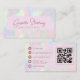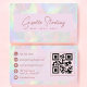 Make a radiant impression with this elegant iridescent opal stone rose script QR code business card. Designed with a luminous opal-inspired background, romantic rose gold script typography, and a convenient built-in QR code, this design combines modern technology with timeless elegance. Perfect for beauty professionals, event planners, stylists, or creative entrepreneurs who want to elevate their brand with sophistication. Personalize easily with your name, title, and contact info — print-ready and designed to shine with luxury and charm.