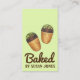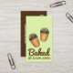 Personnalisez simplement vos informations pour un look unique ! Les cartes de visite présentent une illustration originale d'une paire de madeleines françaises trempées au chocolat, surmontée de pistaches vertes. Idéal pour une entreprise de boulangerie ou de biscuits.
