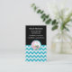 Voici un modèle de carte de commerce de détail de babystore ou de fournitures pour bébés à la mode et amusant que certains ont utilisé pour un magasin de vêtements pour bébés d'occasion. Créé avec un motif zigzag chevron branché et un joli arrière - plan bleu avec un petit emblème à la fois mignon et coloré.