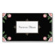 Present your brand with classic sophistication using this elegant magnetic business card. The design features a dramatic, solid black background, creating a bold canvas for the delicate details. Symmetrical clusters of soft, dusty pink roses and vibrant green leaves gracefully adorn all four corners, adding a touch of natural beauty. A crisp white rectangular frame, designed to hold your essential information, is elegantly embellished with delicate, symmetrical light gold scrollwork at its top and bottom edges. The entire composition is finished with a refined double-line gold border, emphasizing its timeless charm. This classic and refined design is perfect for high-end florists, boutique event planners, gourmet bakeries specializing in wedding cakes, beauty consultants, or fine stationery designers. This versatile design can also be adapted for elegant save-the-dates, formal event invitations, or as a sophisticated branding element for any chic business or event.
