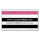 Personnalisez ce carte de visite magnétique à rayures horizontales noir et blanc moderne avec une rayure rose-chaud brillante comme parties scintillant en ajoutant votre nom et votre site Web. Image imprimée plate, PAS de parties scintillant réelle.