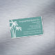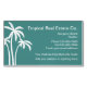 magnets cartes de visite pour un service immobilier ou immobilier conçu dans un thème tropical palmiers et aménagement moderne organisé avec couleur arrière - plan vert mer qui a cette sensation de plage. Créé pour un courtier, un courtier, un agent immobilier ou une agence.