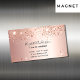 Un aimant carte de visite élégant, féminin et moderne. Un arrière - plan doré rose, décoré de scintillants. Personnalisez et ajoutez vos nom, texte/titre et coordonnées. Lettres noires. Le nom est écrit avec un script de style à la main moderne et tendance. Parfait pour les femmes entrepreneurs, consultants, propriétaires d'entreprises, maquilleurs.