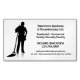Une conception de carte de visite audacieuse et noire et blanche comportant une image de style de silhouette d'une personne tenant un balai humide dans le noir croquant sur un arrière - plan blanc simple. Facile de lire le texte avec plusieurs secteurs customisés des textes. Choisissez votre propre couleur d'arrière - plan si vous préférez.