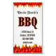 Un modèle de carte de visite magnétique de restaurant personnalisé avec script et texte occidental, BBQ en lettres fumantes et art des flammes rouges sur le haut et le bas. Customisez-le pour changer vos polices, couleurs, ajouter votre propre logo et plus encore, même enregistrer votre design pour plus tard.