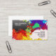 Cardez les caractéristiques un choix de couleurs lumineuses aléatoires visant pour attirer l'attention. En haut à gauche au faisant le coin, vous avez votre nom et fonction. Vers le pied de la carte sont tous vos autres contacts d'affaires. Le déplacement au dos, là est votre URL de logo et d'affaires. Au-dessous de ceci, il y a une option pour créer votre propre slogan ou tagline. Dans ce cas, mon tagline est "chaque client a une histoire, leur font des histoires en vos annonces". C'est une carte simple, gaie, extrêmement colorée. Son but est d'attirer l'attention de sorte que vous vous teniez. Une carte qui est plus adaptée pour des relations publiques.