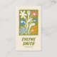 Carte De Visite Main dessinée Écrite Vert Gras Rétro Boho Floral