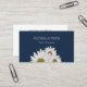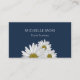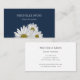 Moderne Floral Event Planner carte de visite, avec un design simple de marguerites blanches sur un arrière - plan bleu marine. Avec le lettrage blanc et noir personnalisable, vous pouvez ajouter vos propres informations. Une façon professionnelle de promouvoir votre entreprise dans le style.