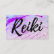 Cette conception est chic et féminine aussi bien que forte et masculine. C'est un excellent choix pour quelqu'un qui cherche la carte de Reiki qui est artistique, abstraite, et moderne aussi bien que jolie, belle, chic et artsy pour leur marquage à chaud de maître de Reiki ou de praticien de Reiki. Le texte noir de typographie de Reiki est sur un bel arrière - plan très frais artsy unique captivant chic moderne abstrait artistique de violette, de bleu de turquoise, de magenta et de fuchsia.