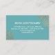 La marguerite lunatique et l'or d'aquarelle de bleu verdâtre d'aqua regardent des cartes de visite de mandala. Approprié à beaucoup de professions telles que des instructeurs de yoga, des fleuristes, des chiroprakteurs, des classes de méditation, des thérapeutes de massage, des spas de beauté, des praticiens holistiques de médecine, aussi bien que des organisateurs de mariage, des coiffeurs, des esthéticiens, des boutiques de mode, arrière - plan de bleu de turquoise etc. sur l'avant avec l'aquarelle florale de marguerite blanche. Le centre de la marguerite a le mandala hippie d'or de boho. Nom des affaires ou nom personnel dessous en vert plus foncé d'aqua. Le dos a les mandalas assortis de boho d'effet d'or dans les coins opposés sur l'arrière - plan bleu assorti d'aqua avec les lettres blanches contenant le nom customisé et autre des détails de contact. Complétez le modèle de votre propre information d'affaires. D'autres cartes de visite personnalisables sont disponibles dans notre magasin Zazzle/angela65.
