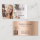 Personnalisez et ajoutez votre propre photo sur le devant et votre nom. Il y a une photo recouverte de blanc sur le côté droit de la photo pour que le texte soit lisible. Retour : arrière - plan Rose d'or. Modèles pour Votre nom, titre, numéro de téléphone, adresse postale et de site, votre propre code QR à votre site Web ou compte de médias sociaux.