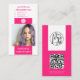 Carte De Visite Maquillage rose néon moderne cheveux photo qr code