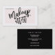 Un élégant carte de visite de maquillage moderne et élégant avec une élégante typographie de style manuscrite sur un bloc de couleur rose pastel avec une bordure blanche et un arrière - plan noir à l'arrière. Les deux arrière - plans sont entièrement personnalisables Si vous avez besoin de personnalisation, n'hésitez pas à me contacter