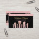 Faites une impression éblouissante et professionnelle avec ce carte de visite glamour ! Doté d'un arrière - plan noir sophistiqué encadré d'une bordure de parties scintillant rose étincelante, il est décoré de brosses à maquillage rose or/rose. Ce design accrocheur est parfait pour les coiffeurs, maquilleurs, professionnels de la beauté, esthéticiennes ou toute personne de l'industrie cosmétique qui cherche à élever leur marque. Customisez-le avec votre nom, profession, coordonnées, email, site web et les poignées de médias sociaux pour créer une carte vraiment inoubliable qui reflète parfaitement votre goût et votre expertise.