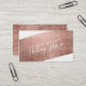 Un carte de visite rose de maquilleur de rayure de traçage de feuille d'or de faux élégant moderne, professionnel et chic avec la police élégante et un arrière - plan rose d'or sur le dos