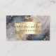 Élevez votre marque avec cette élégante carte de visite présentant un design captivant de marbre à l'aquarelle dans des teintes luxueuses de marine, de lavande et d'or. L'esthétique moderne et les accents métalliques créent un look unique et sophistiqué. Le nom et les informations de contact personnalisables permettent une touche personnelle, tandis que le code QR au dos offre un accès facile à votre portfolio ou à vos réseaux sociaux. Parfait pour les coiffeurs, les maquilleurs et autres professionnels de la beauté.