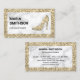 Carte de visite élégant avec talons de femmes et accents faux parties scintillant avec typographie moderne. Ajoutez votre nom et vos coordonnées pour faire une première impression durable.