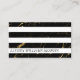 Un design carte de visite haut de gamme avec un luxueux marbre noir avec des faux éclats d'or et un arrière - plan rayé blanc avec votre nom dans une élégante police italique. Le design noir et blanc est simple et chic pour une esthétique surélevée pour votre marque. Idéal pour les designers d'intérieur, stylistes de mode, boutiques et salons. © 1201AM CREATIVE