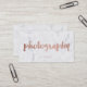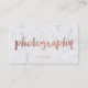 Un carte de visite moderne et élégant de photographie avec la typographie moderne de brosse de style de lettrage de main dans la feuille d'or rose de faux sur un arrière - plan de marbre blanc à la mode et élégant. Si vous avez besoin de n'importe quelle personnalisation, n'hésitez pas en me contactant