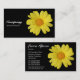 Un carte de visite avec une photo isolée d'une marguerite jaune après une douche de pluie. Nom d'entreprise etc sur le devant avec d'autres détails sur le verso avec le même motif et le même style.