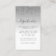Cet élégant carte de visite de boulangerie présente une illustration de gâteau mariage turquoise et argentée sur un arrière - plan à l'ombre argentée, avec une bordure supérieure de fausse parties scintillant argentée dégoulinante. Customisez-le avec votre nom d'entreprise en écriture manuscrite noire avec des swashes au début et à la fin, et vos coordonnées en police sans serif noire. (Pour conserver les swashes, ne remplacez que les lettres dans ces champs de texte, laissant les symboles en place.)