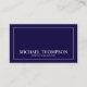Carte de visite bleu et blanc de la marine classique professionnel avec vos informations en blanc et gris style de police serif classique avec bordure rectangle blanc.