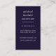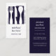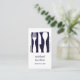 Faites la promotion de votre restaurant, boulangerie, restauration ou services de chef personnel avec ces élégants cartes de visite bleu marine et blanc. Doté d'une silhouette de couteau, d'une fourche et d'une cuillère en blanc sur un carré bleu foncé en détresse, avec deux lignes de texte personnalisé sous le lettrage classique. Ajoutez votre détail et contact au verso en blanc sur un arrière - plan bleu contrasté.