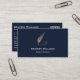 Classé et classique, ce carte de visite de notaire mobile a une quill d'or sur un arrière - plan de marine avec texte blanc Ajouter vos détails d'affaires notaire sur le dos.