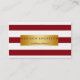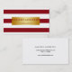 Faux motif en feuille d'or dans un motif moderne Maroon & White Chic Stripes sur ce carte de visite. Il est parfait pour les cosmétologues, coiffeurs, maquilleurs, wedding planners, stylistes.