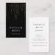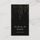 Un design carte de visite vertical simple et élégant est doté d'un lettrage blanc classique sur un arrière - plan noir riche avec des cascades de faux fils dorés au sommet. Personnalisez avec deux lignes de texte personnalisé sur le devant, et ajoutez vos coordonnées complètes au verso.