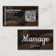 Stimulez votre entreprise avec nos Cartes de visite de design Modèle de Massage élégant et professionnel. Customisez votre carte avec vos informations professionnelles, y compris un code QR, pour créer une touche moderne et personnalisée. Disponible en format standard 3,5 x 2,0 avec angles normaux ou arrondis, parfait pour les massothérapeutes, les pratiquants de reiki, les réflexologues, les chiropraticiens et les professionnels du bien-être holistique. Améliorez votre marque avec ces cartes de visite design et polyvalents.