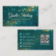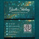 Un design opal chic turquoise et or parties scintillant créé pour les massothérapeutes. Ce carte de visite de luxe moderne dispose d'un code QR intégré pour la réservation instantanée et le partage de contacts aisé, offrant aux professionnels du bien-être une façon élégante et fonctionnelle de se connecter avec les clients. Les tonalités turquoises chatoyantes aux accents dorés de parties scintillant créent un look apaisant mais glamour, parfait pour la massothérapie, les soins spas et les services de santé holistiques.