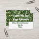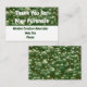 Ajoutez un peu plus avec vos factures ou colis avec ce carte de visite d'appréciation du client. Une photo de bulles vertes flottantes fournit l'arrière - plan à l'avant et à l'arrière de cette carte promotionnelle de l'entreprise. "Merci pour votre achat", votre nom d'entreprise et contact peuvent être facilement personnalisées. Photo originale - C. McGouldrick