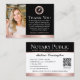 Express gratitude aux clients avec ces cartes de visite de remerciement personnalisé. Une façon parfaite de montrer votre appréciation et vos futures collaborations invitations. Ce modèle design met en valeur votre photo, ainsi qu'un stylo en plume dans un sceau - ou simplement remplacer par votre logo. Un code QR est inclus au verso, encourageant les clients à se connecter à un site d'évaluation et à laisser des commentaires. Idéal pour un notaire public, un agent de signature de prêt, un agent de livraison de fiducie de notaire certifié, l'ACDNT, un notaire mobile, un service d'appostille ou toute autre profession juridique. Couleurs imprimées : noir et blanc, avec éléments d'or rose et rose. Magasinez la collection en ligne pour des idées et des fournitures de produits plus populaires, conçus pour les notaires!