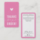 Carte De Visite MERCI POUR VOTRE COMMANDE insérez le ROSE-CANDY mo