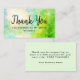 Chic et sophistiqué, c'est un sage, citron vert émeraude, grunge abstrait utilisé comme arrière - plan pour un merci, loyauté petit carte de visite. Il y a un message qui dit merci de soutenir ma petite entreprise, et au dos il y a un code de réduction pour vos clients à la prochaine commande.