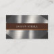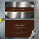 Cette carte de visite élégante combine des panneaux en métal brossé avec une bande d'accent brun audacieuse, créant un design raffiné mais industriel. Parfaite pour les professionnels du bâtiment, les ingénieurs ou les artisans qui recherchent un look professionnel et durable. Personnalisez le texte pour mettre en valeur votre expertise et laissez une impression durable sur vos clients.