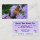 Ce carte de visite est une publicité pour le miel. Il comporte une abeille rayée d'or pollinisant activement une fleur pourpre d'ageratum. Les belles fleurs lilas et le feuillage vert lumineux s'ajoutent au sentiment magnifique et ensoleillé d'été. Tout le texte peut être customisé pour adapter vos besoins d'affaires personnelles.