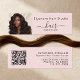 Extension de cheveux élégante en rose blush avec des tons doux et féminins et une calligraphie moderne. Créé pour les professionnels de l'extension de cheveux et les entreprises de beauté à la recherche d'une identité de marque chic, soignée et mémorable. Inclut un espace pour le logo, l'icône des réseaux sociaux et le code QR, permettant aux clients de scanner et de prendre rendez-vous rapidement.