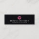 Les cartes de visite chic et modernes disposent d'une illustration d'embrassades rose vif avec deux lignes de texte personnalisé en dessous. Personnalisez l'envers avec vos coordonnées complètes en blanc sur noir. Parfait pour les distributeurs indépendants de produits de lèvres et les maquilleurs.