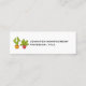 Mini carte de visite avec une illustration fantaisiste représentant 2 joyeux petits cactus assis dans leurs pots de fleurs. Ils ont chacun leurs propres expressions uniques, souriantes et jolies.