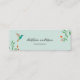 Unique business card featuring a hand-painted turquoise Hummingbird and flowery branches on a light blue background. Anna's Hummingbird can be found year-round resident in California, breeding in winter and nesting during the rainy season in gardens and parks to chaparral, frequenting feeders and native plants.