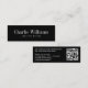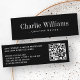Mini cartes de visite noirs et élégants avec votre nom et vos coordonnées, ainsi qu'un code QR.