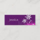 Conception de carte de visite à la mode des silhouettes de fleur d'abrégé sur blanc sur un arrière - plan pourpre avec des flocs roses. La personnalisation est facile.
