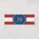 Carte De Visite Mini Rayures blanches rouges motif, monogramme de bleu