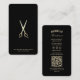 Looking for a customizable business card for your barbershop? Our Elegant Minimal Barber Barbershop Gold Scissor Black Hair Stylist design with QR code is the perfect addition to your establishment!