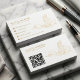 Elevate your professional branding with this sophisticated minimalist design featuring elegant gold-toned line art of a woman working at her laptop. The front offers a clean layout for all your vital contact details, including social media handles, website, and professional address information. Flip the card over to find a prominent scannable QR code designed to instantly link clients to your digital portfolio, website, or social profiles. This contemporary aesthetic is highly ideal for creative directors, designers, and female entrepreneurs looking for a functional yet artistic networking tool. Ensure you make a memorable first impression while providing a seamless digital connection for your audience.