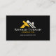 Make a powerful statement with this modern business card, blending minimalist aesthetics with a touch of luxury. The design features a chic gold hammer icon seamlessly incorporated into a white house outline, set against a deep black background. This sophisticated color palette is perfect for construction professionals, architects, and builders who want to convey professionalism and high-end service. This card is designed to impress and leave a lasting impression on clients, highlighting your attention to detail and refined business approach.
