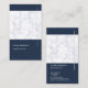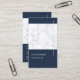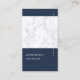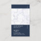 Carte de visite en marbre minimaliste avec arrière - plan bleu marine et bande de marbre gris au milieu du carte de visite standard vertical avec bande verticale argentée sur le côté droit. Une police minimaliste élégante est utilisée pour toutes les informations customisées