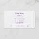 Design minimaliste moderne et épuré en violet. Les lignes épurées de ce carte de visite professionnel en font un choix intelligent pour un domaine tel que l'architecture. Ce carte de visite s'adresse à un propriétaire d'entreprise averti qui souhaite faire une bonne première impression ! Facile à customiser, il suffit d'ajouter vos détails d'affaires dans les champs fournis. Modifiez la disposition de l'image, des polices et des couleurs de texte pour personnaliser encore plus la conception.